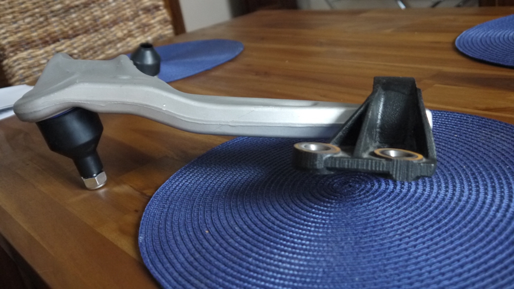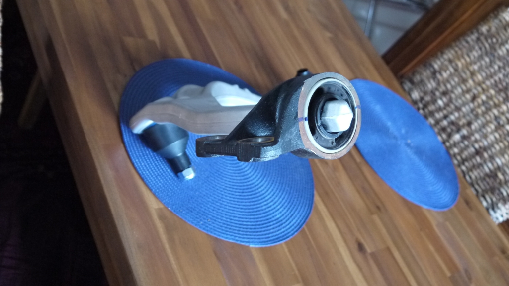 Bon, ça y est, après avoir encore bien bataillé sur la grosse rotule du triangle de gauche cette fois, tout est changé, resserré. J'ai mis du frein filet bleu sur les grosses vis des s-blocks, trouvés à peine serrés.