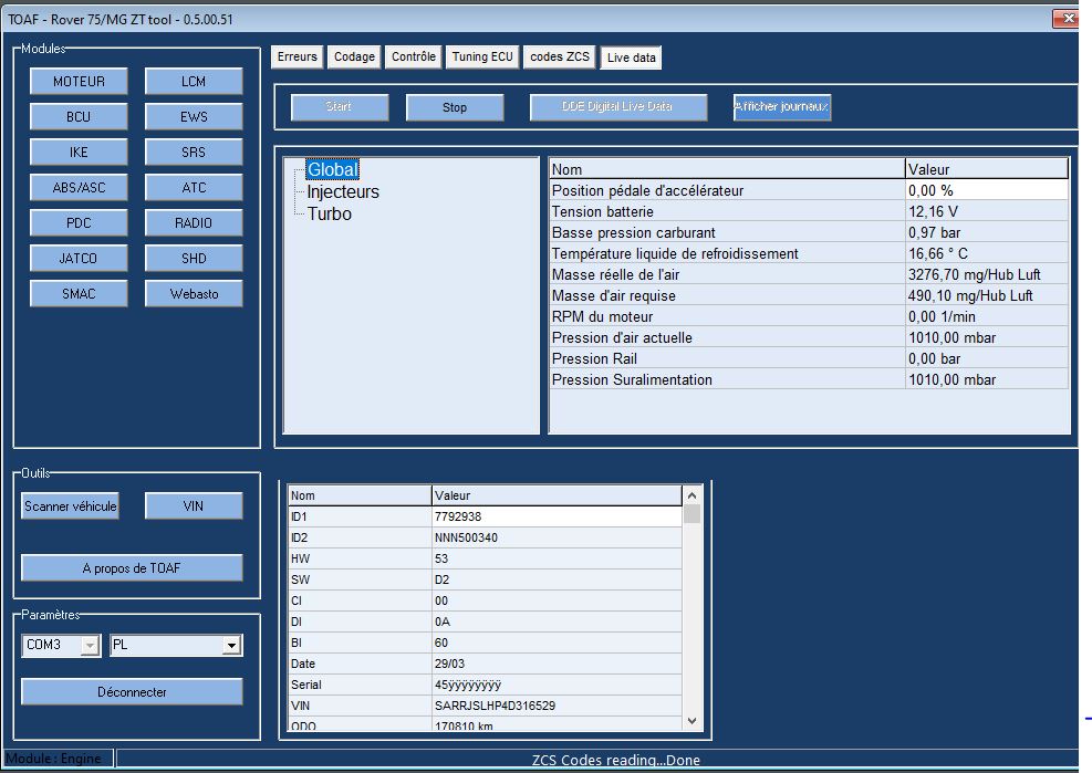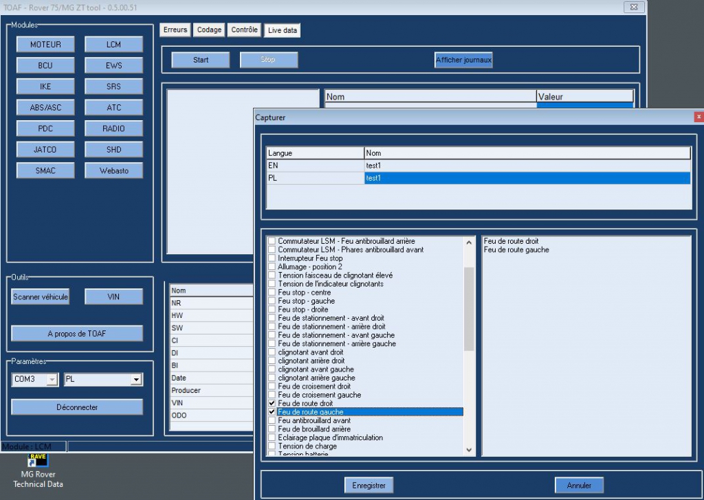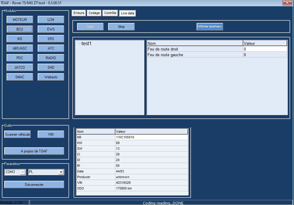 - Tout ne fonctionne pas à 100%. Suivant les modèles de véhicules, certains modules ne sont pas accessibles (ex: pas accès au module airbag sur MK1 2004, il semblerait qu'un nouveau module soit installé à cette période). De plus certains paramétrages ont besoin d'être activés soit en sélectionnant ON ou OFF et ne sont pas forcément pris en compte. Il semblerait que ceci soit du au fait que ce logiciel soit d'origine BM...